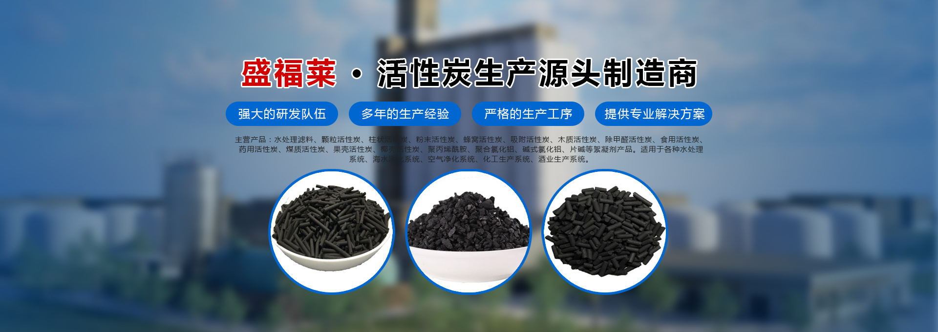 河南盛福萊環(huán)??萍加邢薰臼且患覍I(yè)銷售各種規(guī)格型號活性炭、污水處理藥劑、碳源的公司,位于中原凈水材料基地-鞏義市,是從事各類活性炭及相關產品生產、研發(fā)及銷售的一體化企業(yè)。主營產品:水處理濾料、顆粒活性炭、柱狀活性炭、粉末活性炭、蜂窩活性炭、吸附活性炭、木質活性炭、除甲醛活性炭、食用活性炭、藥用活性炭、煤質活性炭、果殼活性炭、椰殼活性炭、聚丙烯酰胺、聚合氯化鋁、堿式氯化鋁等絮凝劑產品、碳源,適用于各種水處理系統(tǒng)、海水淡化系統(tǒng)、空氣凈化系統(tǒng)、化工生產系統(tǒng)、酒業(yè)生產系統(tǒng)。服務于各種大、中、小型自來水廠、石油化工廠、造紙印染廠、鋼鐵廠、發(fā)電廠、食品廠、冶金廠等行業(yè)。河南盛福萊環(huán)??萍加邢薰緞?chuàng)立以來